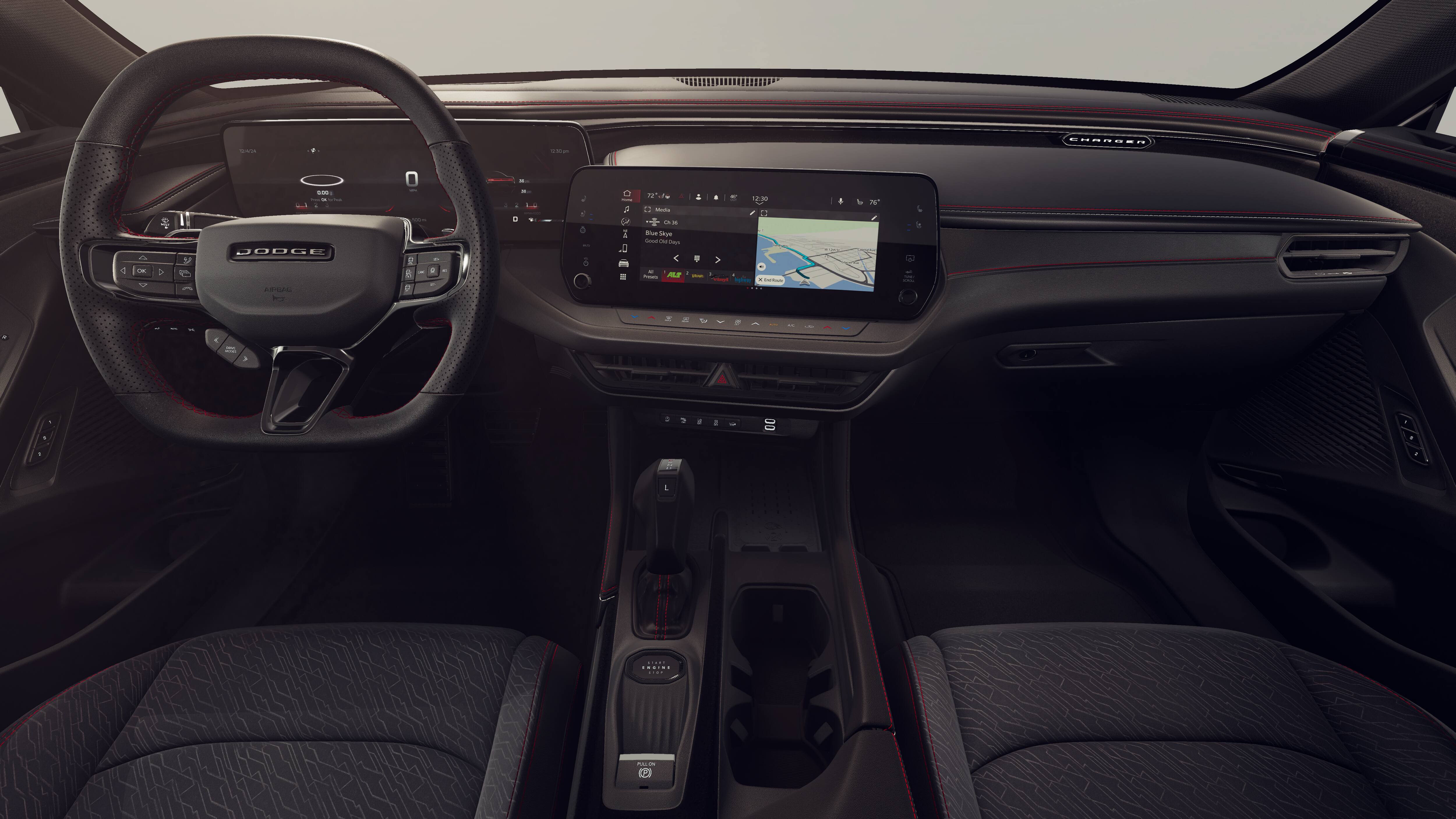 This 2026 Dodge Charger R/T Scat Pack comes nicely equipped with the following Blacktop Package (Dark Exterior Badging, Dual Rear Exhaust with Black Tips, and Wheels: 20 x 10 Dark Finish Aluminum), Quick Order Package 22B Scat Pack Plus (16 Color Driver Display, 2-Way Manual Adjust Front Head Restraints, 2-Way Power Driver Lumbar Adjust, 4G LTE Wi-Fi Hot Spot, 8-Way Power Driver Seat Adjust, 800 Amp Maintenance Free Battery, Alexa Built-in, Attitude Adjustment Lighting, Automatic High-Beam Headlamp Control, Black Color Multi-Function Mirrors, Bright Pedals, Connected Travel and Traffic Services, Connectivity - US/Canada, Disassociated Touchscreen Display, Exterior Mirrors Logo Lamps, Exterior Mirrors with Memory, Front Cubby Bin with Light, Glove Box Lamp, GPS Navigation, HD Radio, Heads-Up Display, Heated Exterior Mirrors, Heated Front Seats, Heated Second Row Seats, Illuminated Door Pull Handles, Integrated Center Stack Radio, Integrated Voice Command with Bluetooth®, Leatherette Seats, LED Footwell Lighting, LED Map Pockets, Low Back Bucket Seats, Map-in-Cluster Display, Performance Pages, Power 2-Way Passenger Lumbar Adjust, Power Adjust 8-Way Front Passenger Seat, Power Adjust Mirrors, Power Hatch, Power Tilt/Telescope Steering Column, Power Windows Global Down w/Key Fob, Premium LED Low-High Reflective Headlamps, Radio, Driver Seat, Mirrors and Steering Column Memory, Radio: Uconnect 5 Navigation with 12.3 Display, Rain Sensitive Windshield Wipers, Rear Door Puddle Lamps, Surround View Camera System, Traffic Sign Information, Ventilated Front Seats, Windshield Wiper De-Icer, Wireless Apple CarPlay, Wireless Charging Pad, and Wireless Google Android Auto), 10 Speakers, 18 High Performance Alpine Speakers with Subwoofer, 4-Wheel Disc Brakes, ABS brakes, Active Noise Control System, Air Conditioning, Alloy wheels, AM/FM radio: SiriusXM w/360L, Apple CarPlay/Android Auto, Auto-dimming Rear-View mirror, Automatic temperature control, Black Seats, Brake assist, Bumpers: body-color, Compass, Delay-off headlights, Driver door bin, Driver vanity mirror, Dual front impact airbags, Dual front side impact airbags, Electronic Stability Control, Emergency communication system: Dodge Connect, Four wheel independent suspension, Front anti-roll bar, Front Bucket Seats, Front Center Armrest, Front dual zone A/C, Front License Plate Bracket, Front reading lights, Fully automatic headlights, Garage door transmitter, Heated door mirrors, Heated front seats, Heated steering wheel, Illuminated entry, Knee airbag, Leather Shift Knob, Leatherette/Cloth Performance Seats, Low tire pressure warning, Manufacturer's Statement of Origin, Occupant sensing airbag, Outside temperature display, Overhead airbag, Overhead console, Panic alarm, ParkView Rear Back-Up Camera, Passenger door bin, Passenger vanity mirror, Power door mirrors, Power driver seat, Power steering, Power windows, Radio data system, Radio: Uconnect 5 with 12.3 Display, Rear anti-roll bar, Rear reading lights, Rear seat center armrest, Rear window defroster, Remote keyless entry, Security system, Speed control, Split folding rear seat, Spoiler, Sport steering wheel, Steering wheel mounted audio controls, Tachometer, Telescoping steering wheel, Tilt steering wheel, Traction control, Trip computer, Variably intermittent wipers, and Wheels: 20 x 10 Aluminum.
