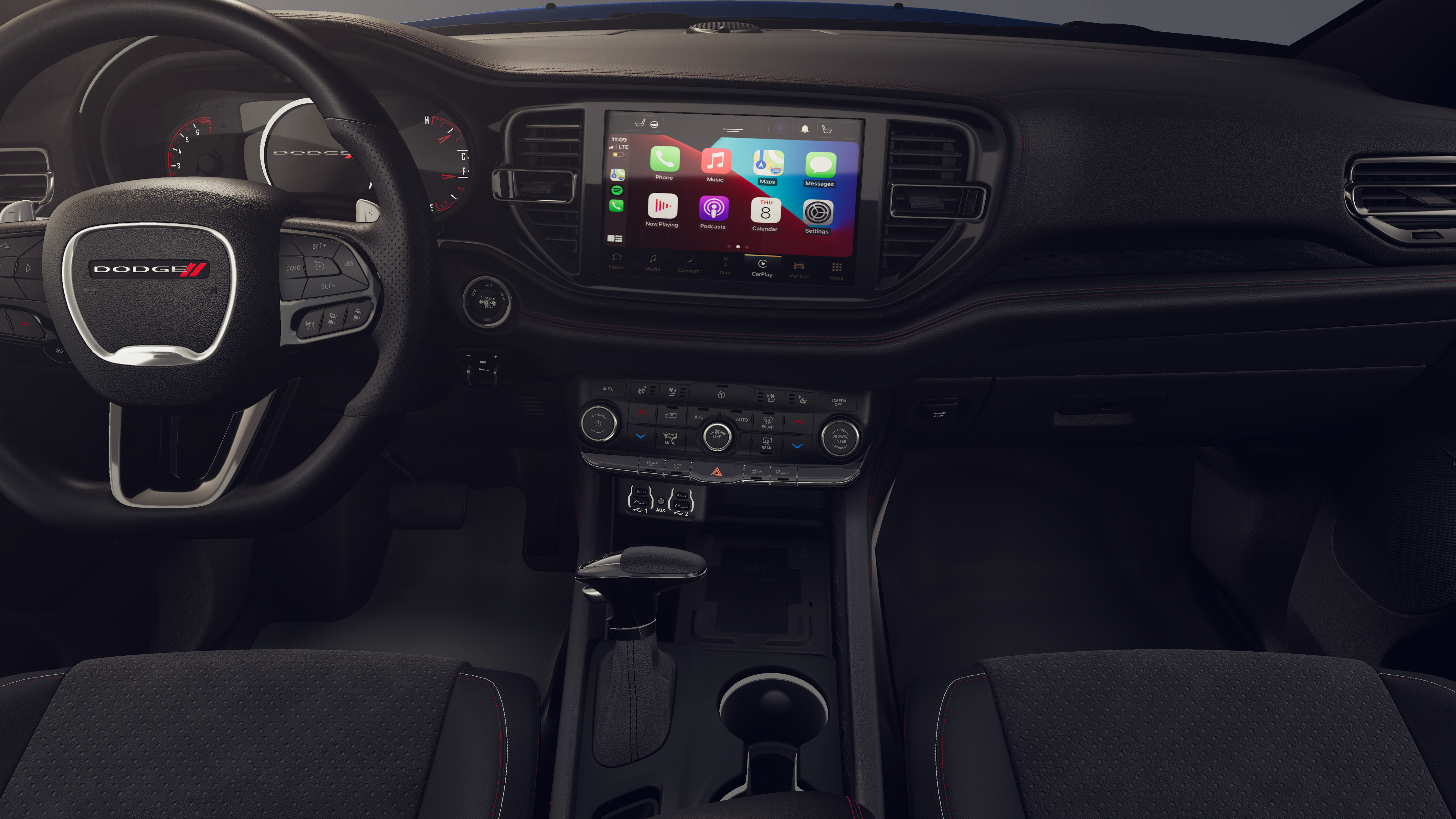 This 2026 Dodge Durango GT Plus HEMI V8 comes nicely equipped with the following Blacktop Redline Package (2nd Row Fold/Tumble Captain Chairs, 2nd Row Mini Console with Cupholders, 2nd Row Seat Mounted Inboard Armrests, 3rd Row Floor Mat and Mini Console, 6-Passenger Seating, Black Dodge Grille Badge, Black Roof Rails, Blacktop Leather SRT Performance Seats, Crypto Sweep Etch Accents, Floor Console with Leather Armrest, Gloss Black Badges, Gloss Black Exterior Mirrors, Heated Second Row Seats, Integrated Roof Rail Crossbars, Performance Lower Splitter, Power 8-Way Driver Memory 8-Way Passenger Seats, Power Driver/Passenger 4-Way Lumbar Adjust, Premium Door Trim Panel, Premium Instrument Panel, Satin Black Dodge Tail Lamp Badge, SRT Rear Spoiler, and Ventilated Front Seats), Quick Order Package 22T GT Plus (115V Auxiliary Power Outlet, 7 and 4 Pin Wiring Harness, Adaptive Cruise Control with Stop, Auto High Beam Headlamp Control, Auto-Dimming Exterior Driver Mirror, Blind Spot with Trailer Detection, Class IV Receiver Hitch, Dual Remote USB Port - Charge Only, Exterior Mirrors with Heating Element, Exterior Mirrors with Memory, Exterior Mirrors with Supplemental Signals, Full Speed Forward Collision Warning Plus, Leather Trimmed Bucket Seats, Leather Wrapped Door Panels, LED Auxiliary Low Beam and Turn Signal, Power 6x9 Multi-Function Foldaway Mirrors, Power Sunroof, Power Tilt and Telescopic Steering Column, Radio/Driver Seat/Mirrors Memory, Red Accent Stitching, and Trailer Brake Control), 3.09 Rear Axle Ratio, 3rd row seats: split-bench, 4-Wheel Disc Brakes, 9 Speakers, ABS brakes, Air Conditioning, Alloy wheels, AM/FM radio: SiriusXM w/360L, Apple CarPlay/Android Auto, Auto-dimming Rear-View mirror, Auto-leveling suspension, Automatic temperature control, Brake assist, Bumpers: body-color, Cloth Bucket Seats with Shift Insert, Compass, Delay-off headlights, Driver door bin, Driver vanity mirror, Dual front impact airbags, Dual front side impact airbags, Electronic Stability Control, Emergency communication system: Dodge Connect, Four wheel independent suspension, Front anti-roll bar, Front Bucket Seats, Front Center Armrest w/Storage, Front dual zone A/C, Front License Plate Bracket, Front reading lights, Fully automatic headlights, Garage door transmitter, Heated door mirrors, Heated front seats, Heated steering wheel, Illuminated entry, Knee airbag, Leather steering wheel, Low tire pressure warning, Navigation System, Occupant sensing airbag, Outside temperature display, Overhead airbag, Overhead console, Panic alarm, ParkView Rear Back-Up Camera, Passenger door bin, Passenger vanity mirror, Power door mirrors, Power driver seat, Power Liftgate, Power steering, Power windows, Radio data system, Radio: Uconnect 5 Nav with 10.1 Display, Rain sensing wipers, Rear air conditioning, Rear anti-roll bar, Rear Load Leveling Suspension, Rear reading lights, Rear seat center armrest, Rear window defroster, Rear window wiper, Remote keyless entry, Security system, Speed control, Speed-sensing steering, Speed-Sensitive Wipers, Split folding rear seat, Spoiler, Sport steering wheel, Steering wheel mounted audio controls, Tachometer, Telescoping steering wheel, Tilt steering wheel, Traction control, Trip computer, Variably intermittent wipers, Voltmeter, Wheels: 20 x 8 Black Noise Split 5-Spoke, and Wheels: 20 x 8 Satin Carbon Split 5-Spoke.
