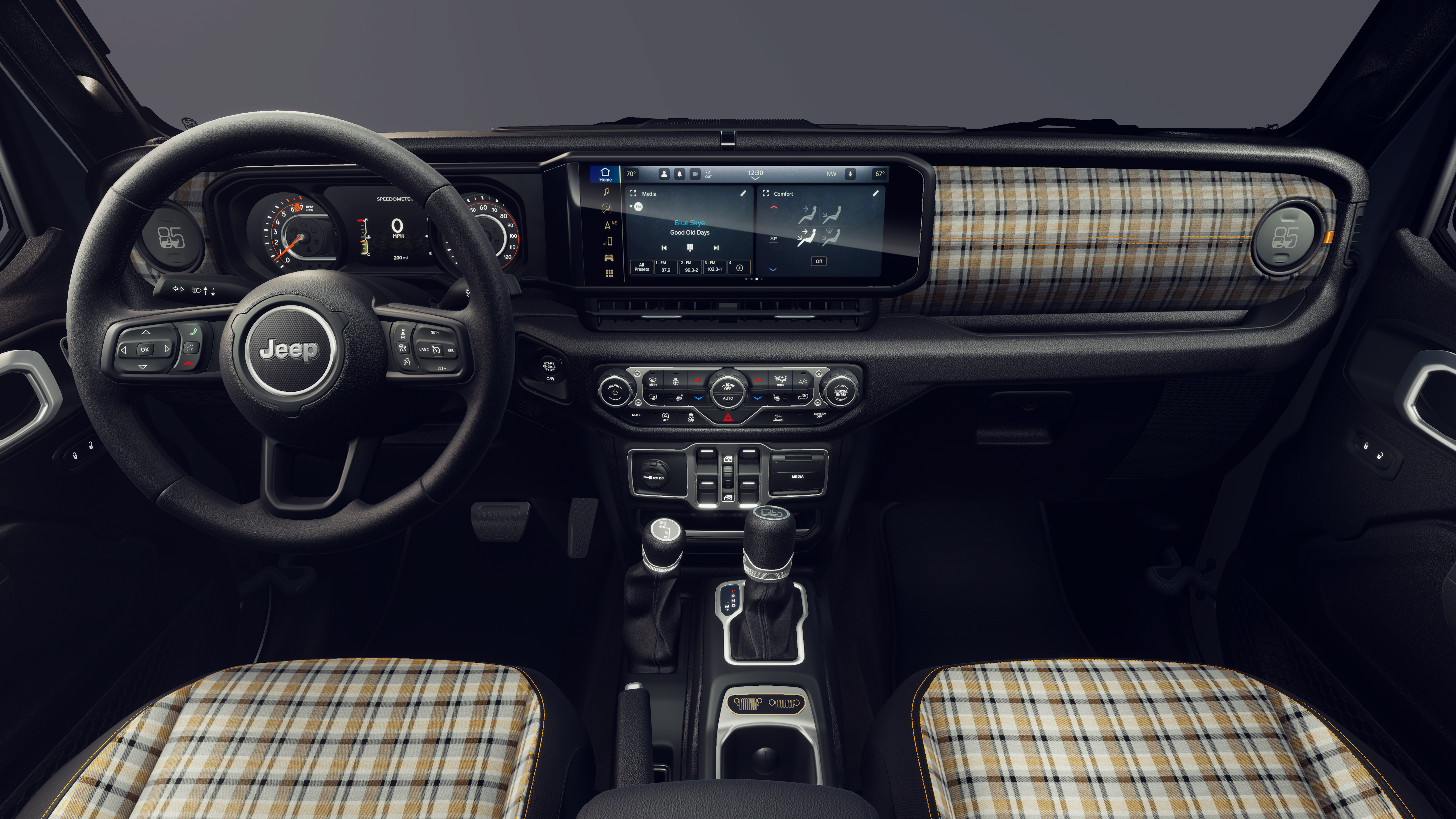 This 2026 Jeep Gladiator 85th Anniversary Edition comes nicely equipped with the following Quick Order Package 24F 85th Anniversary Edition (115V Auxiliary Power Outlet, 12.3 Touchscreen Display, 2-Piece Body Color Fender Flares, 400W Inverter, 4G LTE Wi-Fi Hot Spot, 85th Anniversary Group, 85th Cupholder Plaque, 85th Fender Decal, 85th Gladiator Hood Decal, 85th Shifter Medallion, 85th Tailgate Decal, Advanced Brake Assist, Air Conditioning with Auto Temp Control, Alexa Built-in, Alpine Premium Audio System, Apple CarPlay, Auto-Dimming Rear-View Mirror, Automatic Headlamps, Berber Floor Mats, Bronze Tow Hooks, Central ADAS Decision Module (CADM), Cloth Seat with Plaid Insert and Tag, Cluster 7.0 TFT Color Display, Connected Travel and Traffic Services, Connectivity - US/Canada, Corning Gorilla Glass, Daytime Running Lamp System, Daytime Running Lamps LED Accents, Deep Tint Sunscreen Windows, Disassociated Touchscreen Display, Emergency/Assistance Call, For Details, Visit DriveUconnect.com, For More Info, Call 800-643-2112, Front Door Locks 2-Door Passive Entry, Front LED Fog Lamps, Full Speed Forward Collision Warning Plus, Google Android Auto, GPS Antenna Input, GPS Navigation, Gray/Bronze Trail Rated Badge, HD Radio, Heated Front Seats, Heated Steering Wheel, Integrated Center Stack Radio, Integrated Voice Command with Bluetooth®, LED Premium Reflector Headlamps, Mayan Gold Interior Accents, Media Hub with 2 Charge Only USBs, Mid Tailgate Badge, Normal Duty Plus Suspension, Plaid Wrap Mid-Bolster, Power Heated Mirrors, Premium Wrapped Steering Wheel, Radio: Uconnect 5 Navigation with 12.3 Display, Remote Start System, Security Alarm, SiriusXM Radio Service, SiriusXM with 360L, Sun Visors with Illuminated Vanity Mirrors, Universal Garage Door Opener, USB Host Flip, and Wheels: 17 x 7.5 Steel Oxide), 110 Mph Vehicle Max Speed Calibration, 3.73 Rear Axle Ratio, 4-Wheel Disc Brakes, 8 Speakers, ABS brakes, Air Conditioning, AM/FM radio: SiriusXM with 360L, Apple CarPlay/Android Auto, Body Color 3-Piece Hard Top, Brake assist, Compass, Delay-off headlights, Driver door bin, Driver vanity mirror, Dual front impact airbags, Dual front side impact airbags, Electronic Stability Control, Freedom Panel Storage Bag, Front anti-roll bar, Front Bucket Seats, Front Center Armrest w/Storage, Front fog lights, Front License Plate Bracket, Front reading lights, Illuminated entry, Integrated roll-over protection, Low tire pressure warning, Manufacturer's Statement of Origin, Mopar Black Tubular Side Steps, MOPAR Spray in Bedliner, Normal Duty Suspension, Occupant sensing airbag, Outside temperature display, Overhead airbag, Panic alarm, ParkView Rear Back-Up Camera, Passenger door bin, Passenger vanity mirror, Power steering, Power windows, Radio data system, Radio: Uconnect 5 with 12.3 Display, Rear anti-roll bar, Rear reading lights, Rear Sliding Window, Rear Window Defroster, Remote keyless entry, Speed control, Split folding rear seat, Steering wheel mounted audio controls, Tachometer, Telescoping steering wheel, Tilt steering wheel, Traction control, Trip computer, Variably intermittent wipers, Voltmeter, and Wheels: 17 x 7.5 Black Steel StyleD.