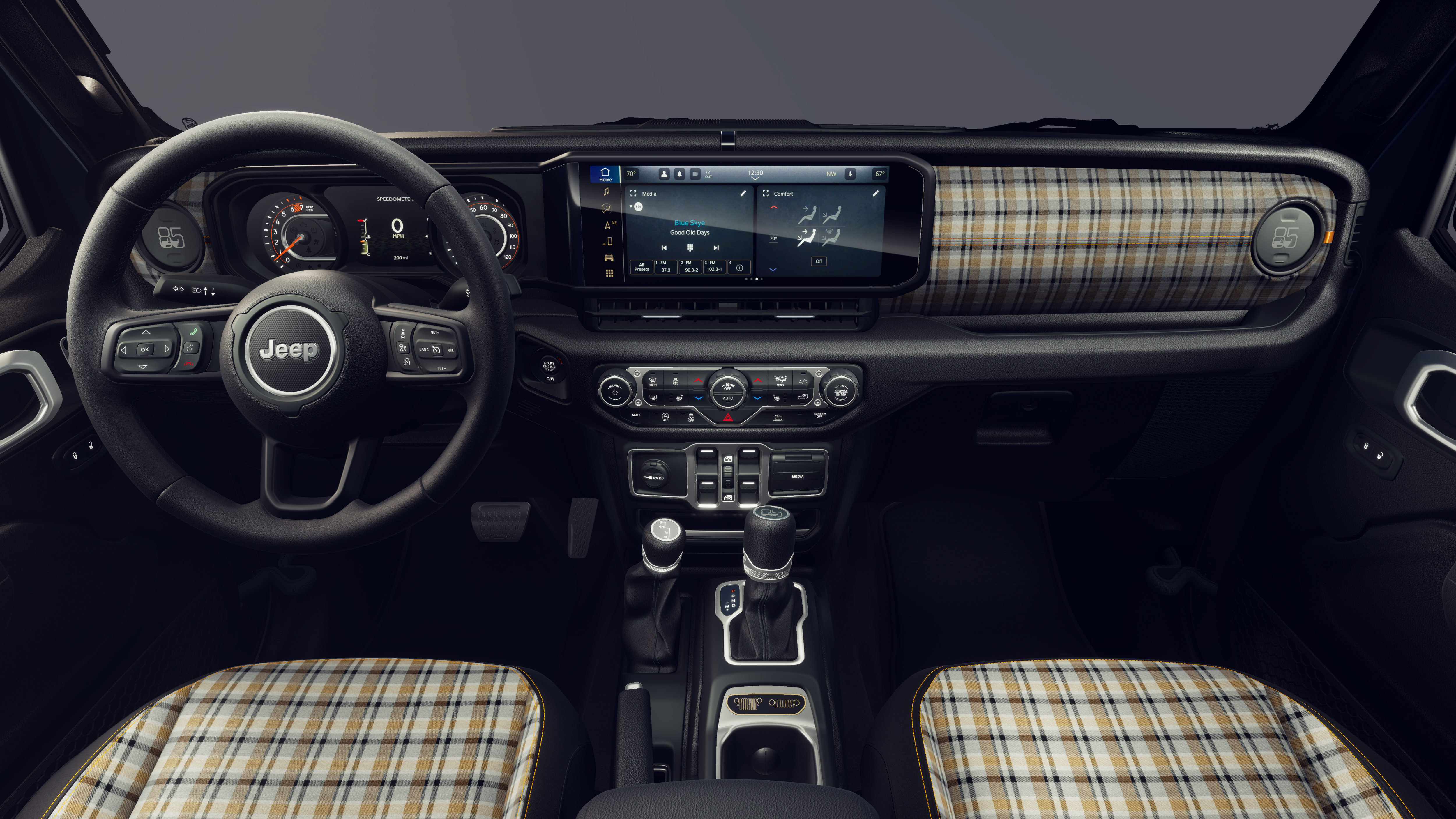 This 2026 Jeep Gladiator comes nicely equipped with the following Quick Order Package 24F 85th Anniversary Edition (115V Auxiliary Power Outlet, 12.3 Touchscreen Display, 2-Piece Body Color Fender Flares, 400W Inverter, 4G LTE Wi-Fi Hot Spot, 85th Anniversary Group, 85th Cupholder Plaque, 85th Fender Decal, 85th Gladiator Hood Decal, 85th Shifter Medallion, 85th Tailgate Decal, Advanced Brake Assist, Air Conditioning with Auto Temp Control, Alexa Built-in, Alpine Premium Audio System, Apple CarPlay, Auto-Dimming Rear-View Mirror, Automatic Headlamps, Berber Floor Mats, Bronze Tow Hooks, Central ADAS Decision Module (CADM), Cloth Seat with Plaid Insert and Tag, Cluster 7.0 TFT Color Display, Connected Travel and Traffic Services, Connectivity - US/Canada, Corning Gorilla Glass, Daytime Running Lamp System, Daytime Running Lamps LED Accents, Deep Tint Sunscreen Windows, Disassociated Touchscreen Display, Emergency/Assistance Call, For Details, Visit DriveUconnect.com, For More Info, Call 800-643-2112, Front Door Locks 2-Door Passive Entry, Front LED Fog Lamps, Full Speed Forward Collision Warning Plus, Google Android Auto, GPS Antenna Input, GPS Navigation, Gray/Bronze Trail Rated Badge, HD Radio, Heated Front Seats, Heated Steering Wheel, Integrated Center Stack Radio, Integrated Voice Command with Bluetooth®, LED Premium Reflector Headlamps, Mayan Gold Interior Accents, Media Hub with 2 Charge Only USBs, Mid Tailgate Badge, Normal Duty Plus Suspension, Plaid Wrap Mid-Bolster, Power Heated Mirrors, Premium Wrapped Steering Wheel, Radio: Uconnect 5 Navigation with 12.3 Display, Remote Start System, Security Alarm, SiriusXM Radio Service, SiriusXM with 360L, Sun Visors with Illuminated Vanity Mirrors, Universal Garage Door Opener, USB Host Flip, and Wheels: 17 x 7.5 Steel Oxide), 110 Mph Vehicle Max Speed Calibration, 3.73 Rear Axle Ratio, 4-Wheel Disc Brakes, 8 Speakers, ABS brakes, Air Conditioning, AM/FM radio: SiriusXM with 360L, Apple CarPlay/Android Auto, Body Color 3-Piece Hard Top, Brake assist, Compass, Delay-off headlights, Driver door bin, Driver vanity mirror, Dual front impact airbags, Dual front side impact airbags, Electronic Stability Control, Freedom Panel Storage Bag, Front anti-roll bar, Front Bucket Seats, Front Center Armrest w/Storage, Front fog lights, Front License Plate Bracket, Front reading lights, Illuminated entry, Integrated roll-over protection, Low tire pressure warning, Manufacturer's Statement of Origin, Mopar Black Tubular Side Steps, MOPAR Spray in Bedliner, Normal Duty Suspension, Occupant sensing airbag, Outside temperature display, Overhead airbag, Panic alarm, ParkView Rear Back-Up Camera, Passenger door bin, Passenger vanity mirror, Power steering, Power windows, Radio data system, Radio: Uconnect 5 with 12.3 Display, Rear anti-roll bar, Rear reading lights, Rear Sliding Window, Rear Window Defroster, Remote keyless entry, Speed control, Split folding rear seat, Steering wheel mounted audio controls, Tachometer, Telescoping steering wheel, Tilt steering wheel, Traction control, Trip computer, Variably intermittent wipers, Voltmeter, and Wheels: 17 x 7.5 Black Steel StyleD.