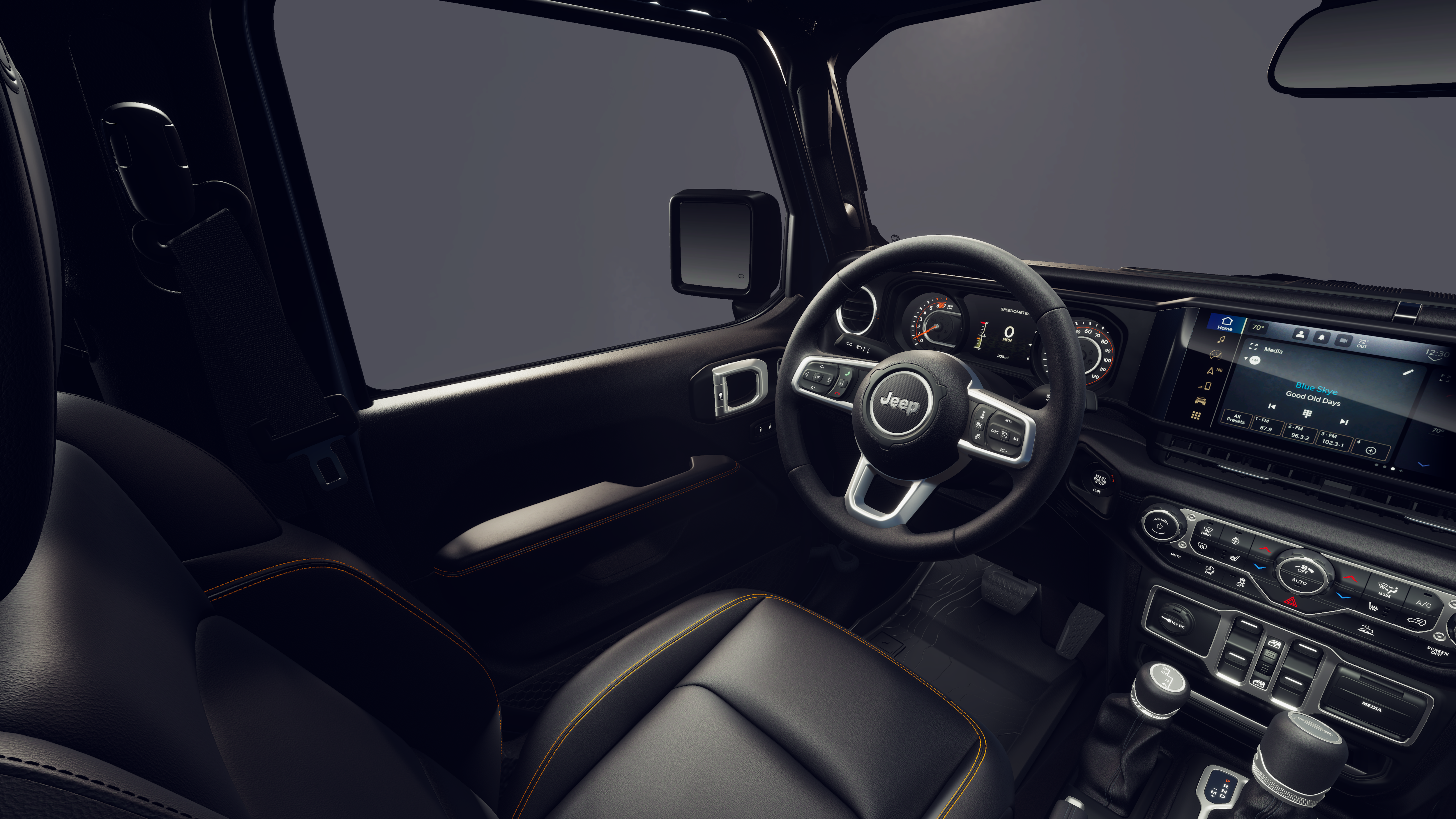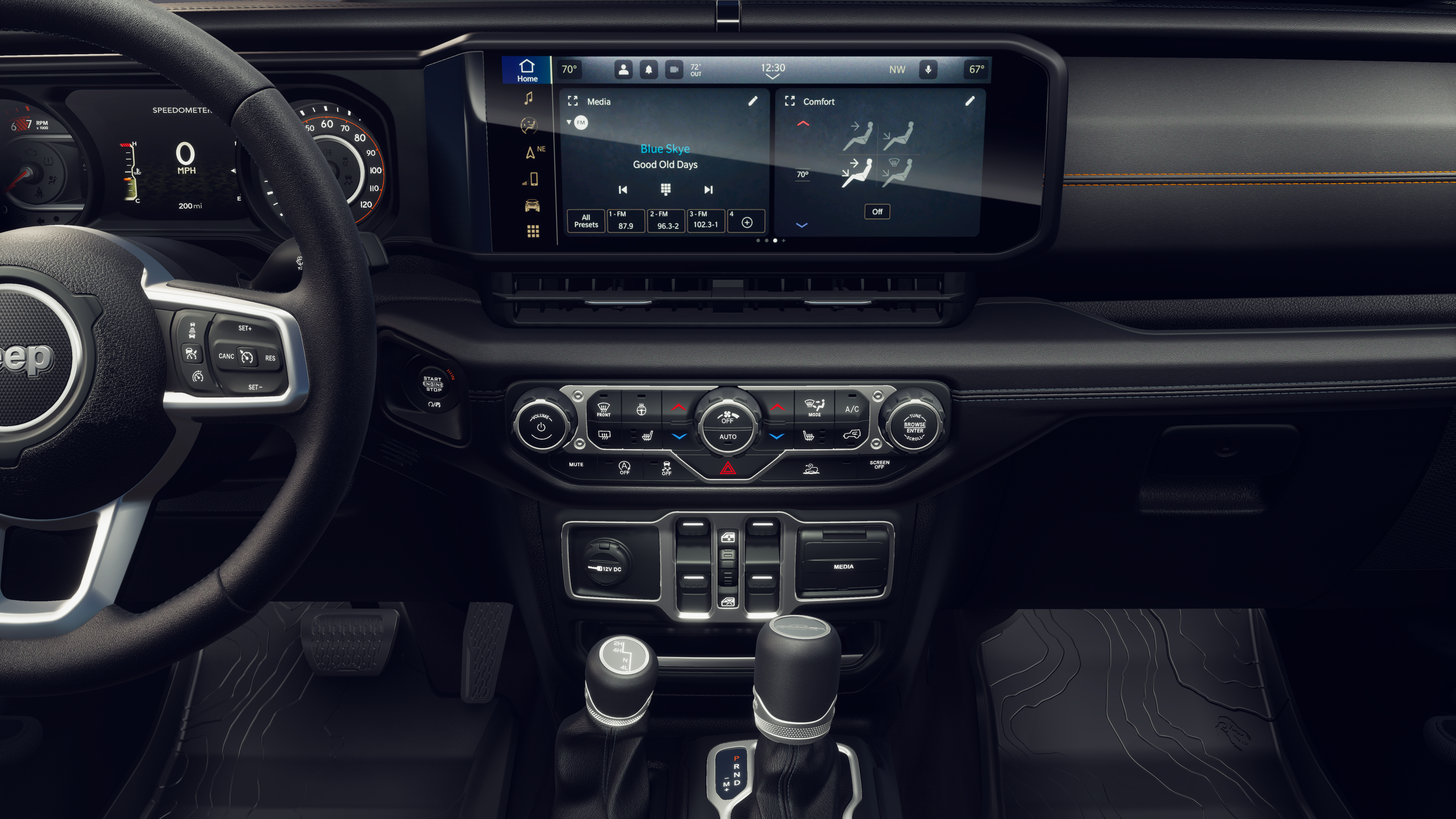 Inside, the Gladiator Texas Trail offers a premium, well-appointed cabin that combines comfort and convenience. The leather-wrapped steering wheel, heated front seats, and dual-zone automatic climate control ensure a pleasant driving experience, while the 12.3-inch touchscreen display and integrated technology features keep you connected and entertained.