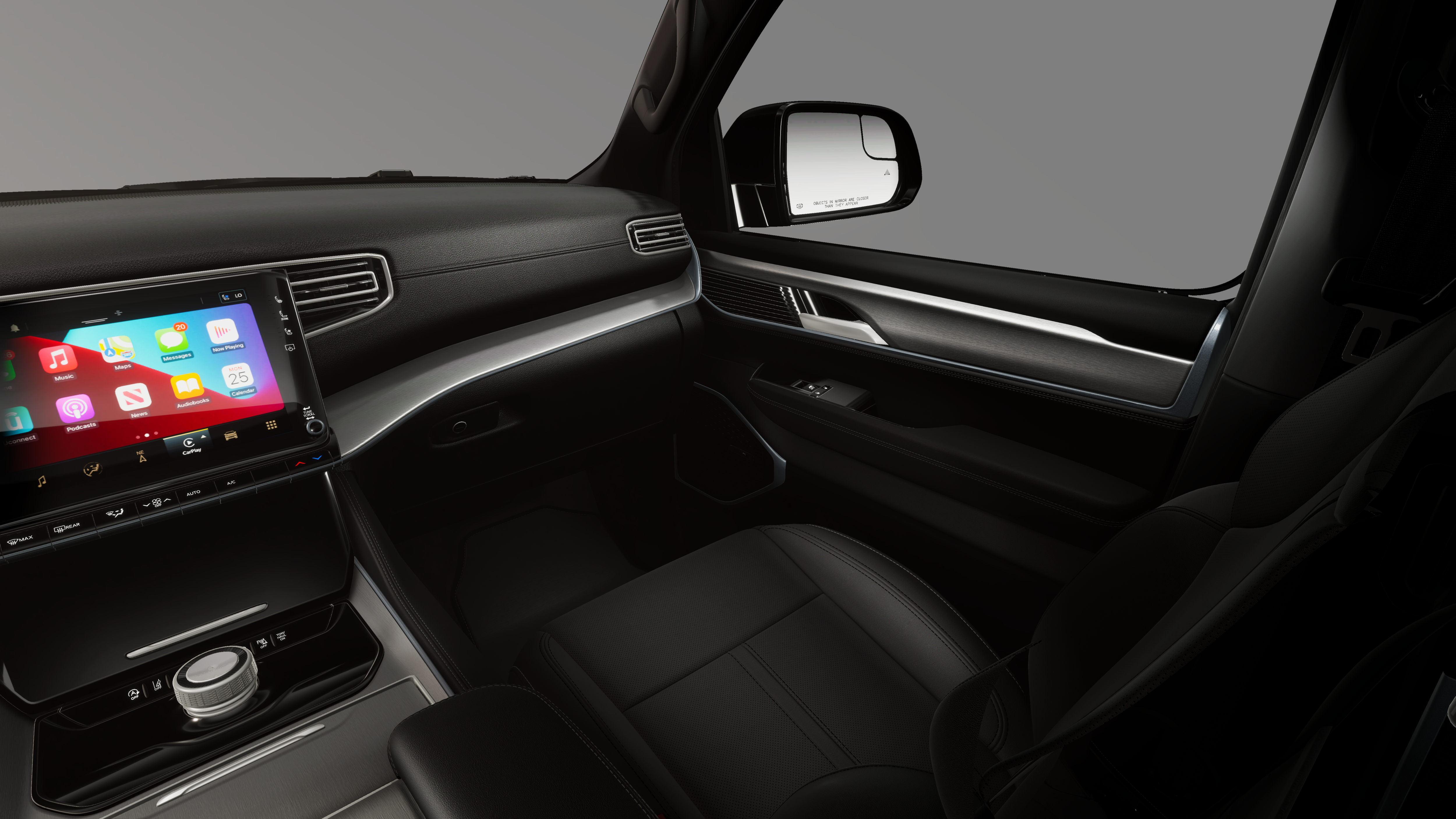 This 2026 Jeep Grand Wagoneer comes nicely equipped with the following Premium Group I (3 Panel Sunroof, 3rd Row 60/40 Power Recline Seat, Auto Adjust in Reverse Exterior Mirrors, Auto Power Folding Exterior Mirrors, Auto Power Folding Mirrors, Auto-Dimming Exterior Driver Mirror, Exterior Mirrors Approach Lamps, Exterior Mirrors with Memory, Exterior Mirrors with Supplemental Signals, Heated Exterior Mirrors, Interior Rear Facing Camera, Luxury Front and Rear Floor Mats, P and P Park and Unpark Assist with Stop System, Reversible Carpet/Vinyl Cargo Mat, Side Distance Warning, and Surround View Camera System), Quick Order Package 29E Grand Wagoneer, 118 Mph Maximum Speed Calibration, 3.55 Rear Axle Ratio, 3rd row seats: bench, 4-Wheel Disc Brakes, 9 Speakers, ABS brakes, Air Conditioning, Alloy wheels, AM/FM radio: SiriusXM with 360L, Anti-whiplash front head restraints, Apple CarPlay/Android Auto, Audio memory, Auto High-beam Headlights, Auto-dimming door mirrors, Auto-dimming Rear-View mirror, Auto-leveling suspension, Automatic temperature control, Brake assist, Bumpers: body-color, Compass, Delay-off headlights, Driver door bin, Driver vanity mirror, Driver's Seat Mounted Armrest, Dual front impact airbags, Dual front side impact airbags, Electronic Stability Control, Emergency communication system: Jeep Connect, Exterior Parking Camera Rear, Four wheel independent suspension, Front anti-roll bar, Front Bucket Seats, Front Center Armrest w/Storage, Front dual zone A/C, Front fog lights, Front reading lights, Fully automatic headlights, Garage door transmitter, Heated door mirrors, Heated front seats, Heated steering wheel, Illuminated entry, Knee airbag, Leather Trimmed Bucket Seats, Low tire pressure warning, Manufacturer Statement of Origin, Memory seat, Navigation System, Normal Duty Suspension, Occupant sensing airbag, Outside temperature display, Overhead airbag, Overhead console, Panic alarm, Passenger door bin, Passenger seat mounted armrest, Passenger vanity mirror, Power door mirrors, Power driver seat, Power Liftgate, Power passenger seat, Power steering, Power windows, Radio data system, Radio: Uconnect 5 Nav with 12.0 Display, Rain sensing wipers, Rear air conditioning, Rear anti-roll bar, Rear reading lights, Rear seat center armrest, Rear window defroster, Rear window wiper, Reclining 3rd row seat, Remote keyless entry, Security system, Speed control, Speed-sensing steering, Speed-Sensitive Wipers, Split folding rear seat, Steering wheel memory, Steering wheel mounted audio controls, Tachometer, Telescoping steering wheel, Tilt steering wheel, Traction control, Trip computer, Turn signal indicator mirrors, Variably intermittent wipers, Ventilated front seats, Voltmeter, and Wheels: 20 x 9 Machine Face Painted Aluminum.