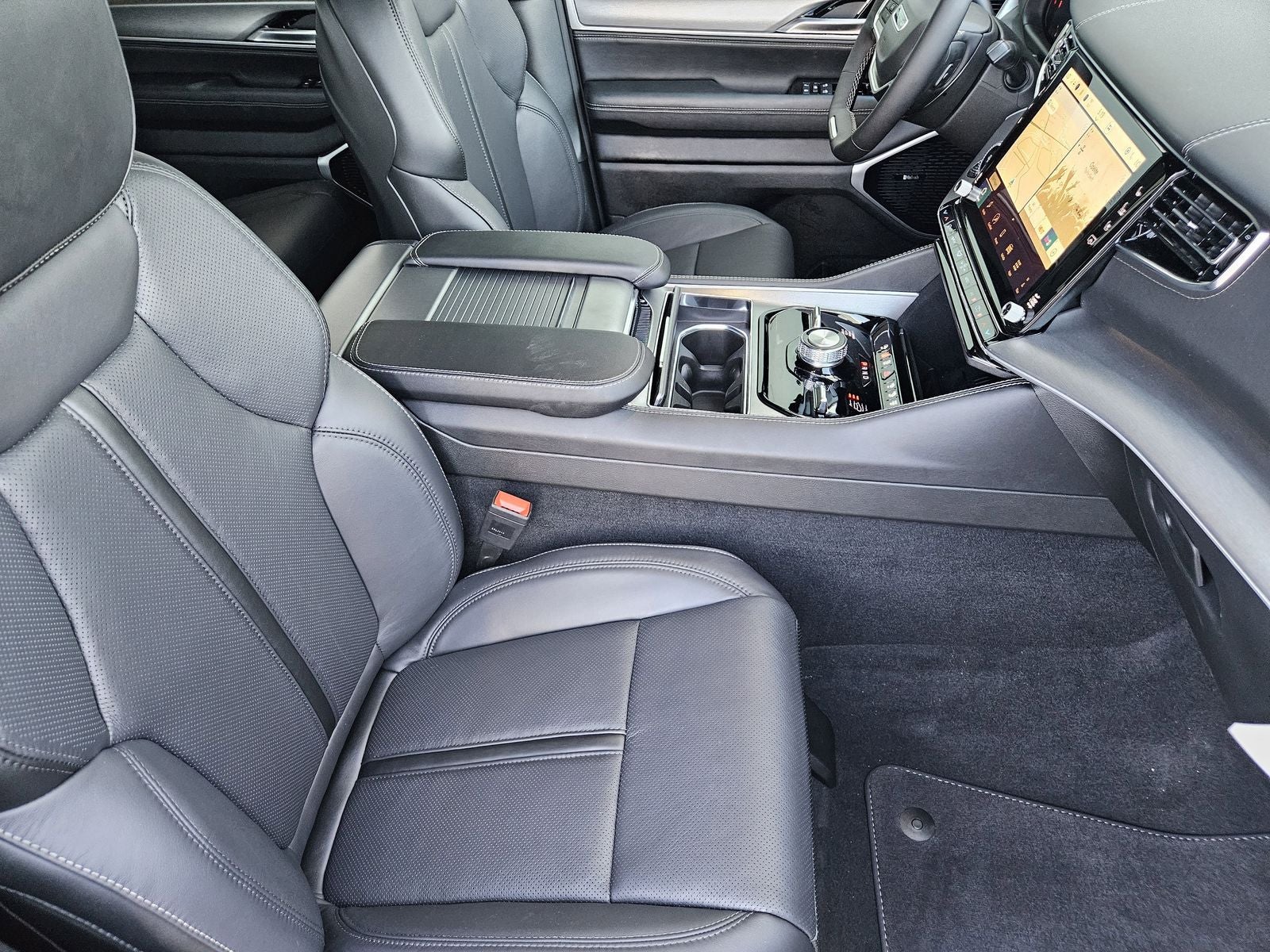 The Grand Wagoneer L cabin offers premium materials, advanced technology, and spacious three-row seating designed for comfort on long drives and everyday family use.