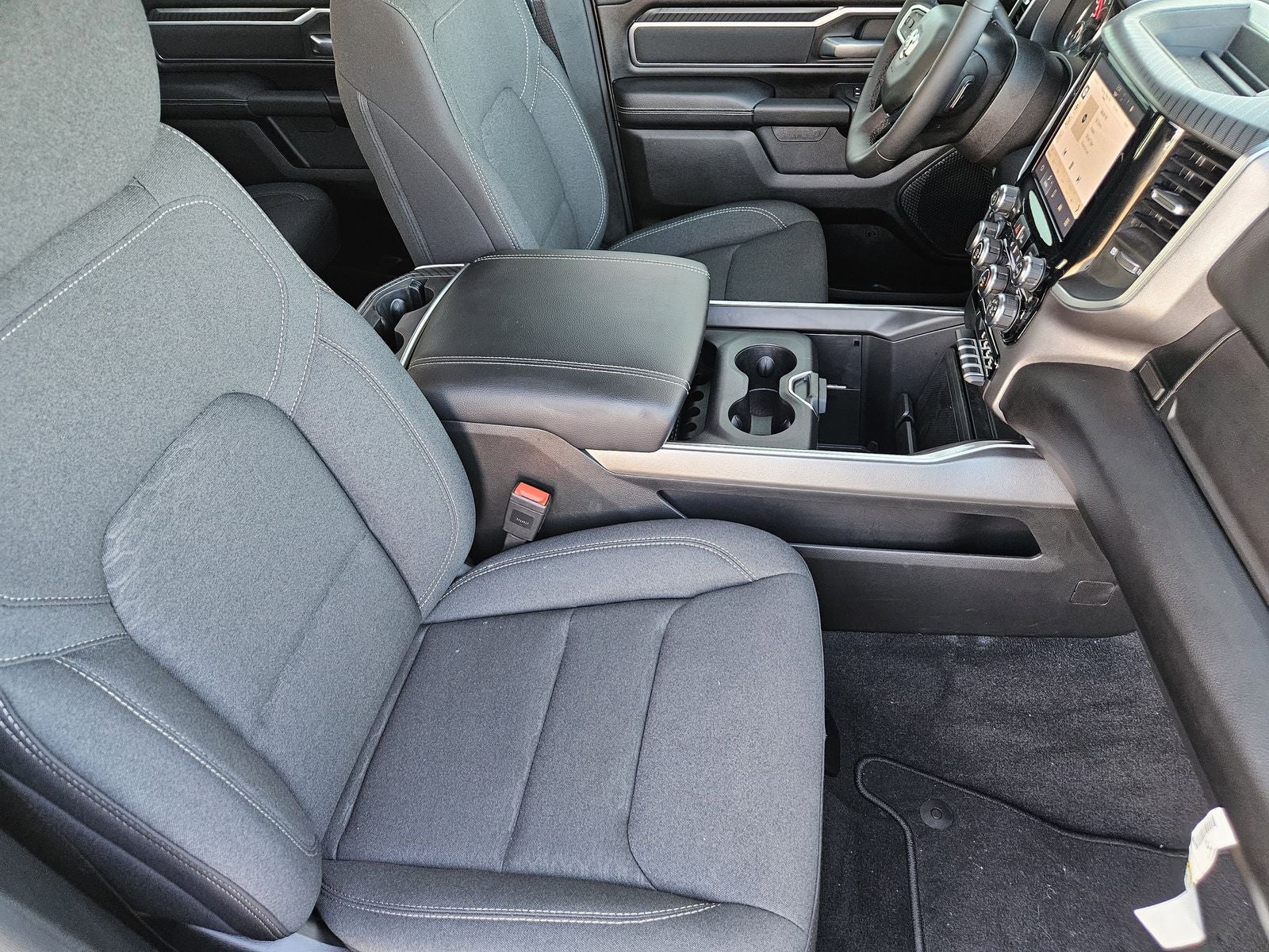 Inside the cabin, Uconnect 5 with an 8.4-inch touchscreen keeps controls intuitive and accessible, while Apple CarPlay, Android Auto, Ram Connect services, and a built-in 4G LTE Wi-Fi hotspot support connectivity on the go. The Big Horn Level 1 Equipment Group adds comfort-focused upgrades including heated front seats, a heated steering wheel, power-adjustable driver seating, and thoughtful storage solutions throughout the cabin.