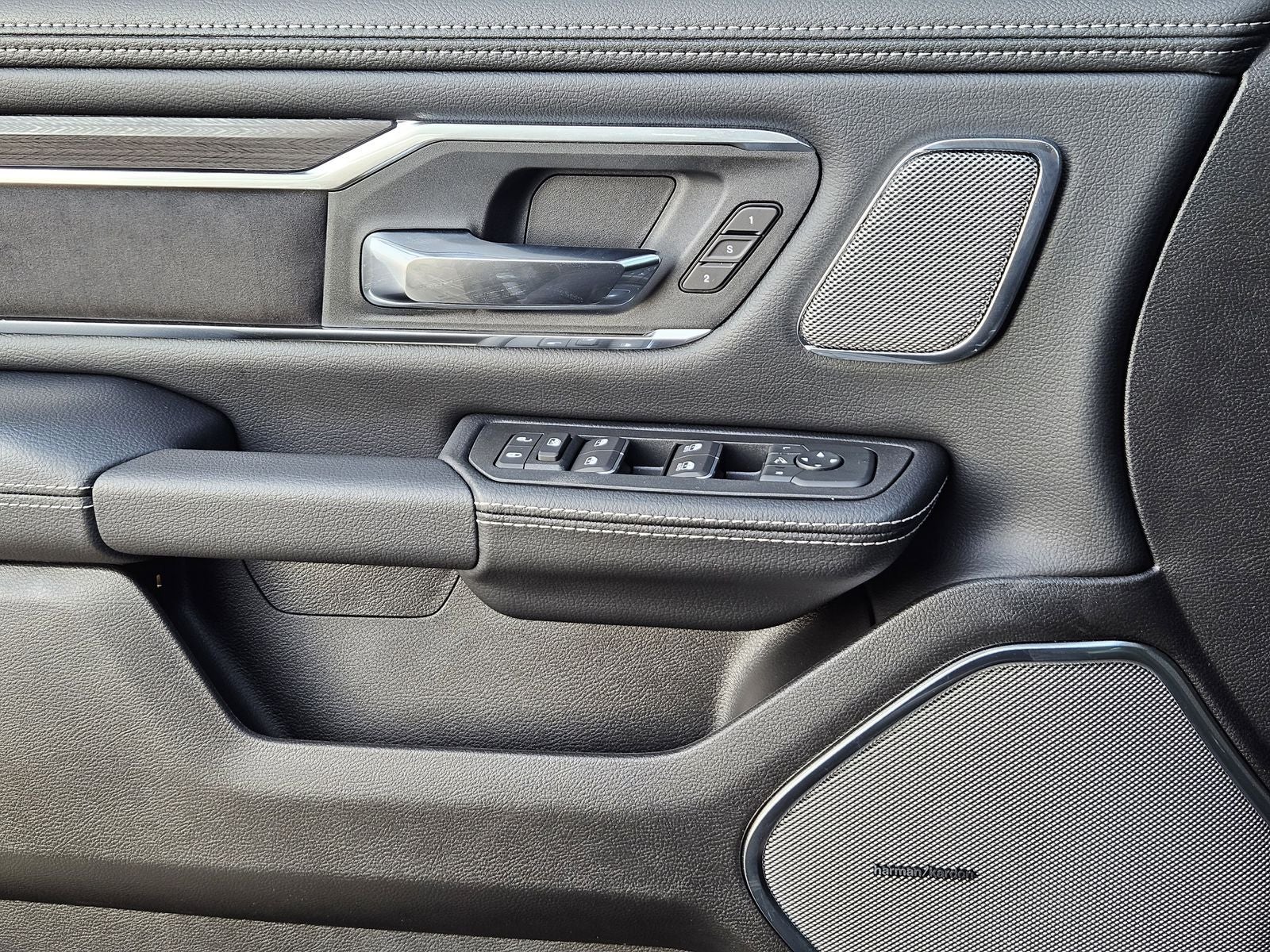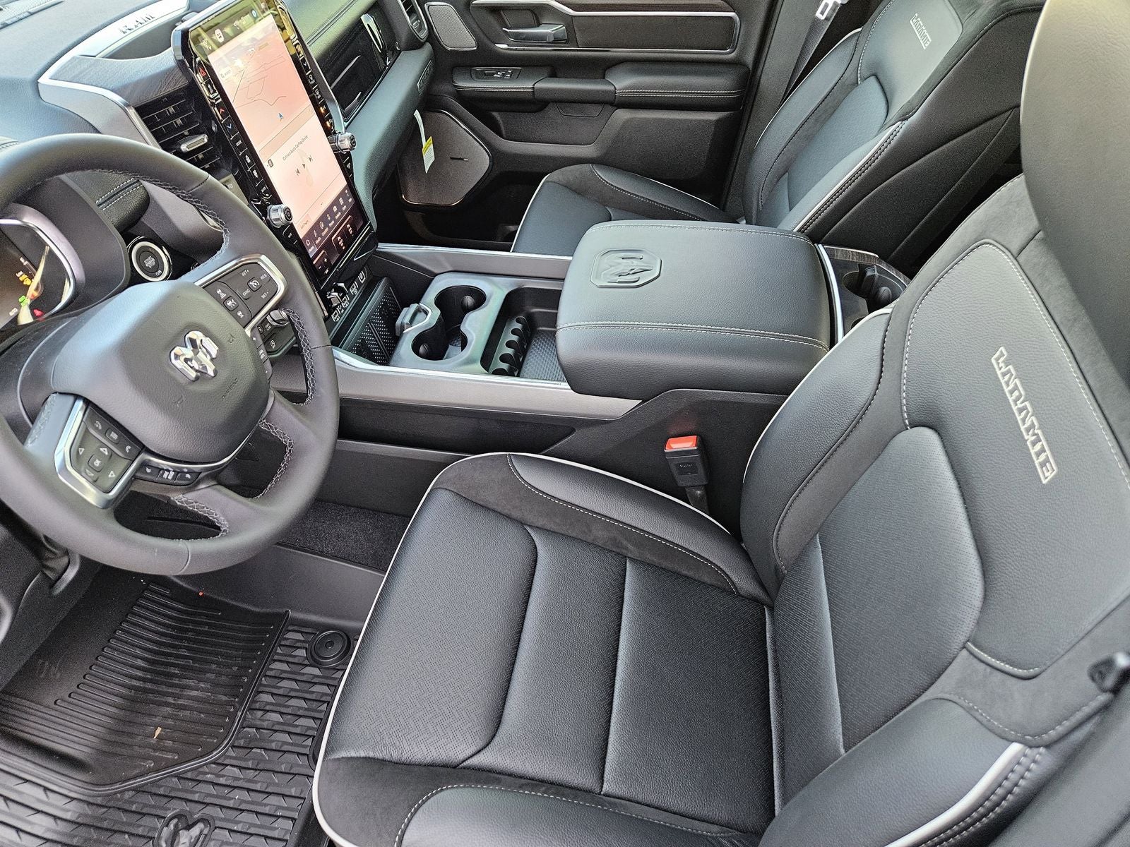 Inside, the Laramie cabin is designed for comfort and technology. Heated and ventilated front seats, heated second-row seating, dual-zone automatic climate control, and power-adjustable pedals with memory create a refined driving environment. The Laramie Level 2 Equipment Group elevates the experience even further with the expansive 14.4-inch Uconnect 5 Nav touchscreen, Front Passenger Interactive Display, 19-speaker Harman Kardon Premium Sound system, and a 12-inch TFT digital cluster.