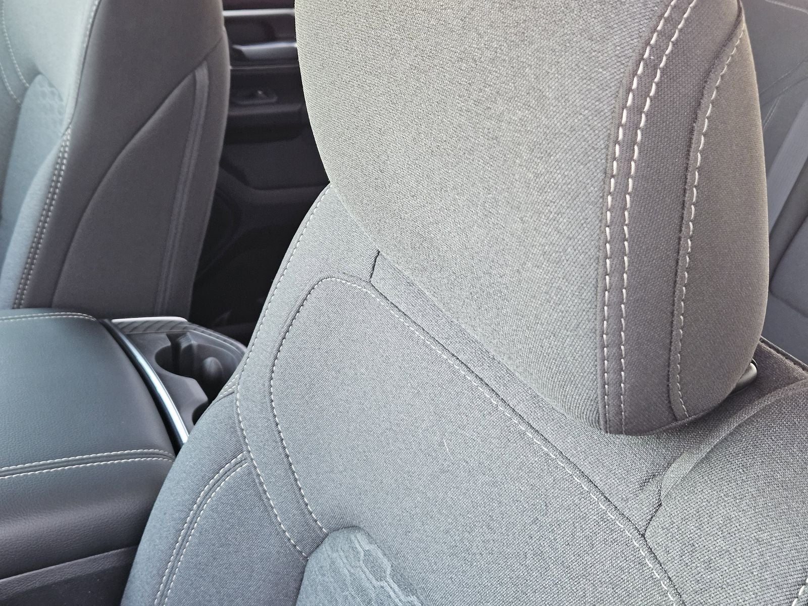 Inside the Crew Cab, the Deluxe Cloth Bucket Seats provide comfort and support, while the Big Horn Level 2 Equipment Group adds premium touches like heated front seats, a heated steering wheel, dual-zone automatic temperature control, power-adjustable pedals, and an 8-way power driver seat with lumbar support. A rear 60/40 folding seat and in-floor storage bins offer added flexibility for passengers and cargo.