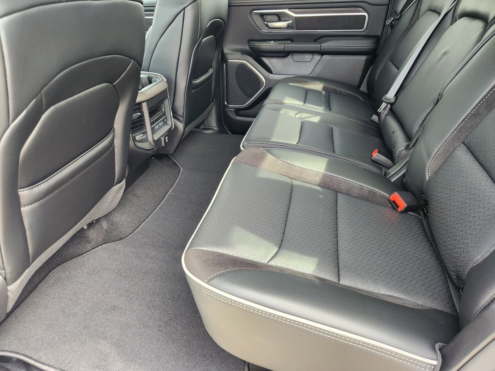 Beyond these eye-catching exterior enhancements, the Laramie's interior is a sanctuary of refined luxury. Slip into the leather-trimmed bucket seats and experience the unparalleled comfort of heated and ventilated front seats, as well as heated rear seats. The Uconnect 5 Navigation system with its expansive 12-inch display keeps you connected and informed, while the premium 10-speaker audio system delivers an immersive listening experience.