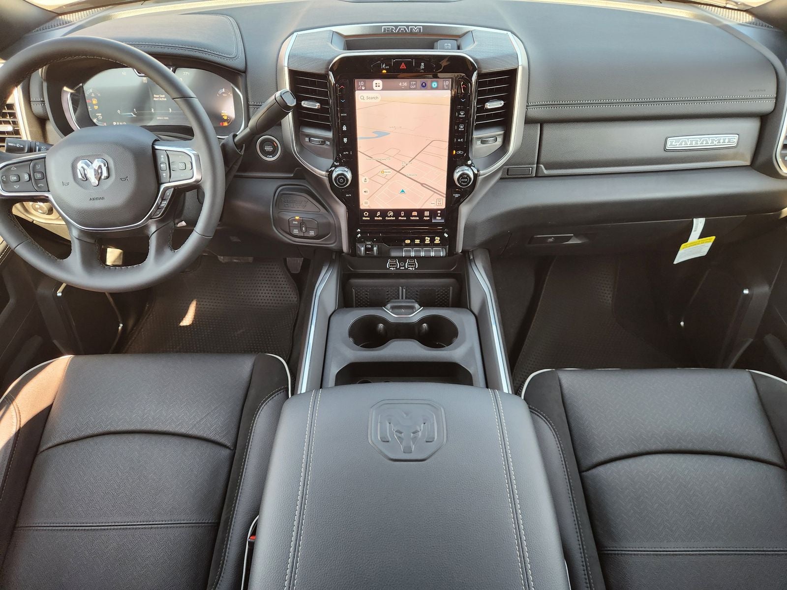 Step inside the Laramie and experience a new level of comfort and convenience. Luxurious leather-trimmed bucket seats, a heated steering wheel, and ventilated front seats provide unparalleled relaxation. The Uconnect 5 Navigation system with a stunning 12-inch display keeps you connected and informed, while the Surround View Camera System enhances visibility and safety.