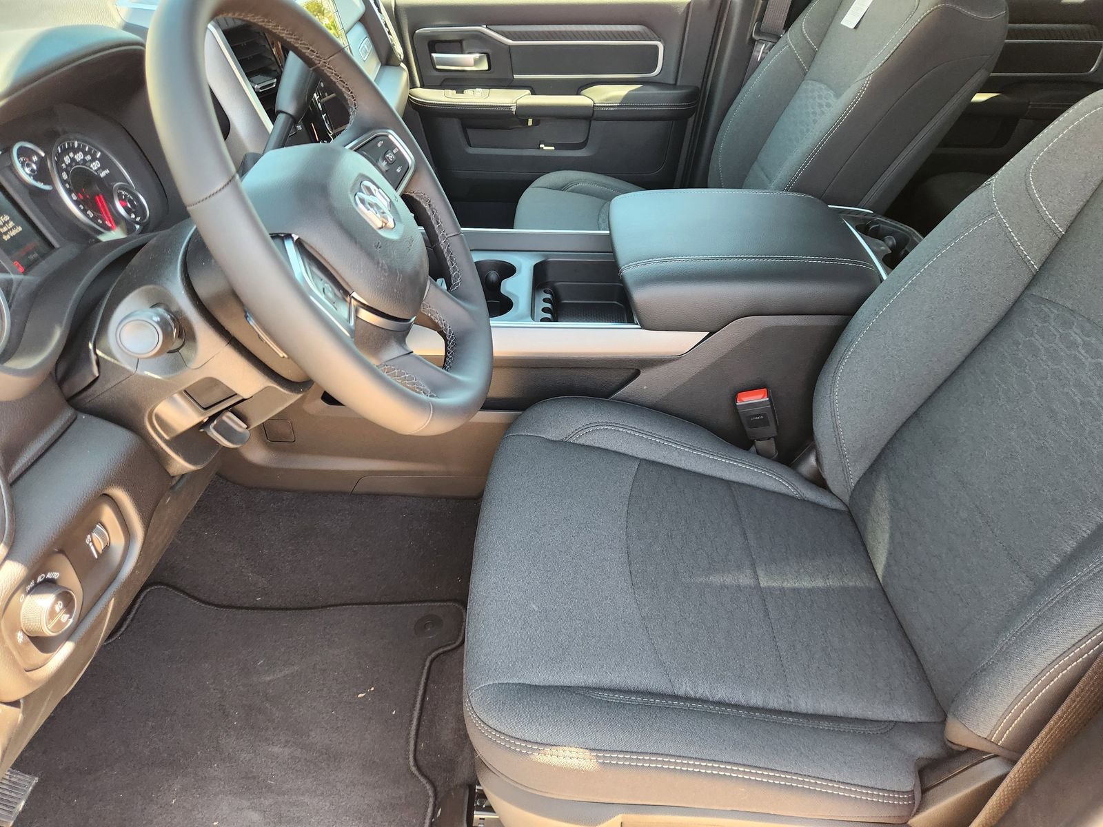 For your comfort and convenience, the Big Horn is equipped with dual-zone automatic climate control, heated front seats, a heated steering wheel, and a power-adjustable driver's seat. The spacious cabin also features a 60/40 split-folding rear bench seat, providing ample room for passengers and cargo.