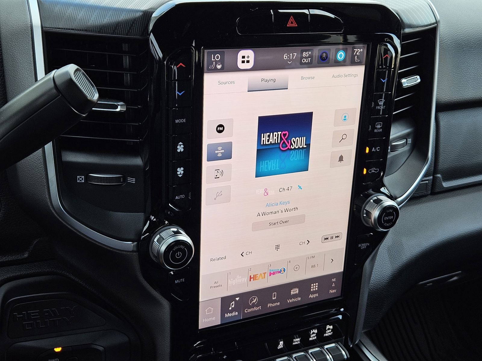 Inside, the Big Horn Crew Cab offers a refined and functional interior. Premium cloth bucket seats, dual-zone automatic climate control, and a large Uconnect 5 Nav system with a 12-inch touchscreen provide comfort and connectivity for both driver and passengers. Advanced safety technologies such as Adaptive Cruise Control with Stop, Forward Collision Warning Plus, and Pedestrian/Cyclist Emergency Braking help add peace of mind whether youre on the highway or navigating tight work areas.