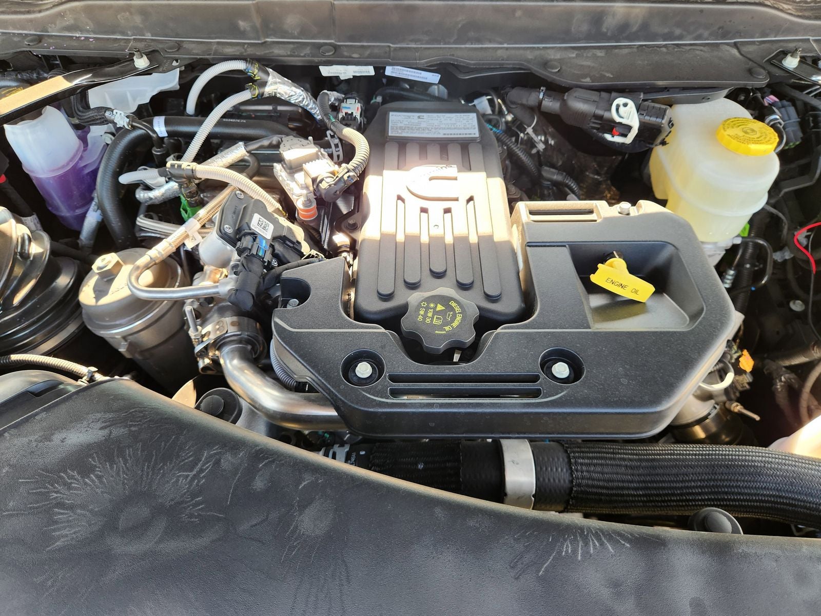 - Cummins 6.7L I-6 Diesel Turbocharged (Includes Selective Catalytic Reduction (Urea), Dual 730 Amp Maintenance Free Batteries, Clean Idle Emissions Label, Cummins Turbo Diesel Badge, Current Generation Engine Controller, Smart Diesel Exhaust Brake, Supplemental Heater, 3.42 Axle Ratio and B-20 Bio Diesel Capability)