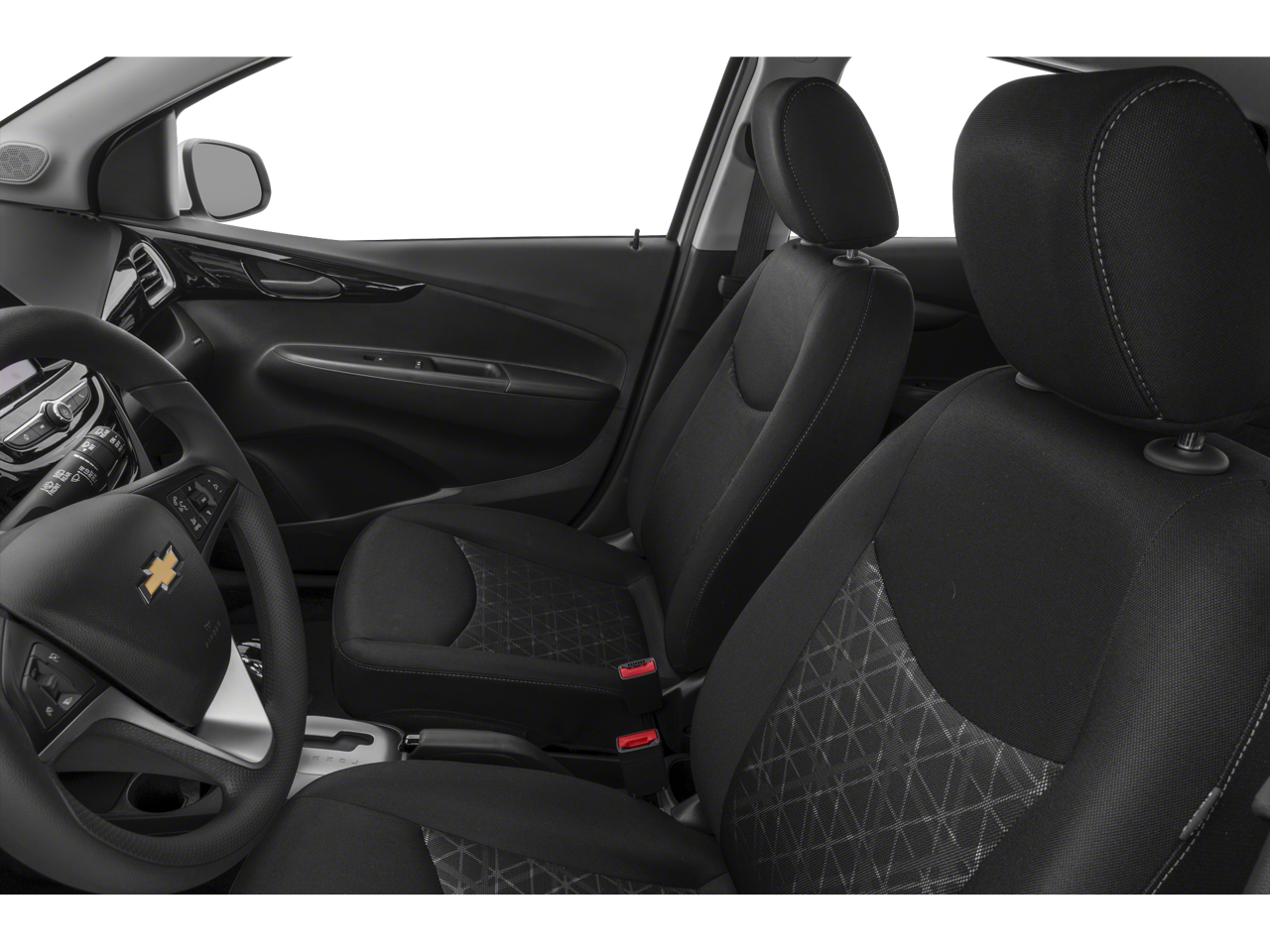 Inside, the Spark features a simple and functional cabin with comfortable cloth bucket seats, air conditioning, power outlet, adjustable steering wheel, and convenient storage throughout the interior. The hatchback design provides flexible cargo space for groceries, luggage, or daily errands.