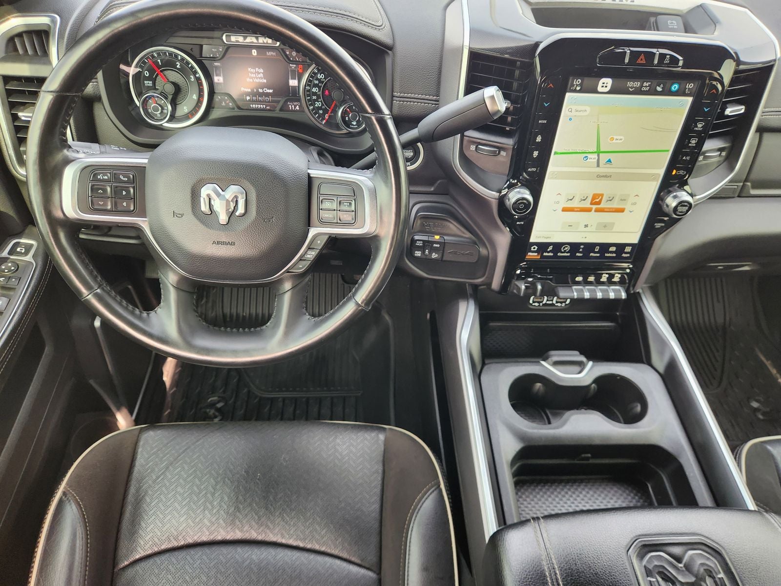 Inside, the spacious and well-appointed cabin surrounds you in comfort and convenience. The Uconnect 5 infotainment system with a 12-inch touchscreen display keeps you connected and entertained, while the premium leather-trimmed seats and heated steering wheel ensure a truly luxurious driving experience.