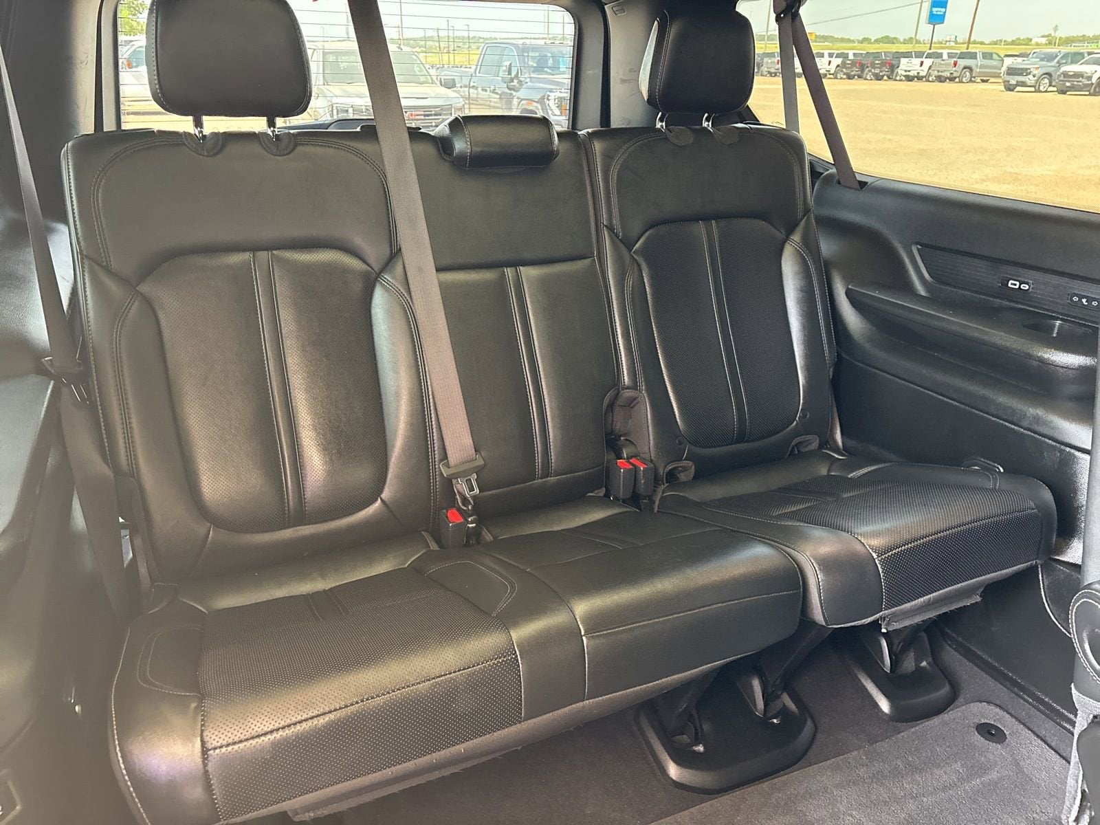 This vehicle comes nicely equipped with Convenience Group I (2nd Row Manual Window Shades, Drowsy Driver Detection, Intersection Collision Assist System, P&P Park & Unpark Assist w/Stop System, Rack Cargo Management System, Surround View Camera System, and Traffic Sign Recognition), Flexible Seating Group (7-Passenger Seating, Floor Console w/Cupholder, and Power Tip/Slide Recline 2nd Row Buckets), Preferred Equipment Group (Heads-Up Display, Quadra-Lift Air Suspension, and Semi Active Damping), Premium Group I (19 Speaker McIntosh Audio System, 3 Panel Sunroof, Adjustable Roof Rail Crossbars, Luxury Front & Rear Floor Mats, Power Deployable Running Boards, Reversible Carpet/Vinyl Cargo Mat, and Wheels: 22 x 9.0 Premium 3 Aluminum), Quick Order Package 25N, Titanium Certified Certified, River Rock, Black Leather, 10 Speakers, 20 x 9.0 Aluminum Wheels, 3.55 Rear Axle Ratio, 3rd row seats: bench, 4-Wheel Disc Brakes, ABS brakes, Adjustable pedals, Air Conditioning, Alloy wheels, AM/FM radio: SiriusXM with 360L, Anti-whiplash front head restraints, Audio memory, Auto High-beam Headlights, Auto-dimming door mirrors, Auto-dimming Rear-View mirror, Auto-leveling suspension, Automatic temperature control, Brake assist, Bumpers: body-color, Compass, Delay-off headlights, Driver door bin, Driver vanity mirror, Driver's Seat Mounted Armrest, Dual front impact airbags, Dual front side impact airbags, Electronic Stability Control, Emergency communication system: Automatic SOS Call, Exterior Parking Camera Rear, Four wheel independent suspension, Front anti-roll bar, Front Bucket Seats, Front Center Armrest w/Storage, Front dual zone A/C, Front fog lights, Front Passenger Interactive Display, Front reading lights, Fully automatic headlights, Garage door transmitter, Genuine wood console insert, Genuine wood dashboard insert, Genuine wood door panel insert, Heated door mirrors, Heated front seats, Heated rear seats, Heated steering wheel, Illuminated entry, Knee airbag, Leather Trimmed Bucket Seats, Low tire pressure warning, Memory seat, Navigation System, Normal Duty Suspension, Occupant sensing airbag, Outside temperature display, Overhead airbag, Overhead console, Panic alarm, Passenger door bin, Passenger seat mounted armrest, Passenger vanity mirror, Pedal memory, Power adjustable front head restraints, Power door mirrors, Power driver seat, Power Liftgate, Power passenger seat, Power steering, Power windows, Radio data system, Radio: Uconnect 5 Nav w/10.1 Display, Rain sensing wipers, Rear air conditioning, Rear anti-roll bar, Rear reading lights, Rear seat center armrest, Rear window defroster, Rear window wiper, Reclining 3rd row seat, Remote keyless entry, Security system, Speed control, Speed-sensing steering, Speed-Sensitive Wipers, Split folding rear seat, Steering wheel memory, Steering wheel mounted audio controls, Tachometer, Telescoping steering wheel, Tilt steering wheel, Traction control, Trip computer, Turn signal indicator mirrors, Variably intermittent wipers, Ventilated front seats, and Voltmeter.