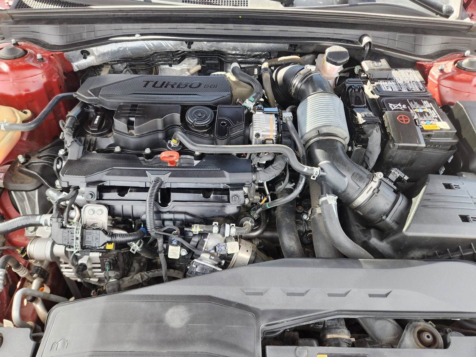 This 2024 Kia K5 GT-Line brings together sporty styling, turbocharged performance, and modern technology in a sleek midsize sedan. Finished in Passion Red, it delivers standout curb appeal with aggressive GT-Line accents, aluminum wheels, LED lighting, and a rear spoiler that adds to its athletic stance.